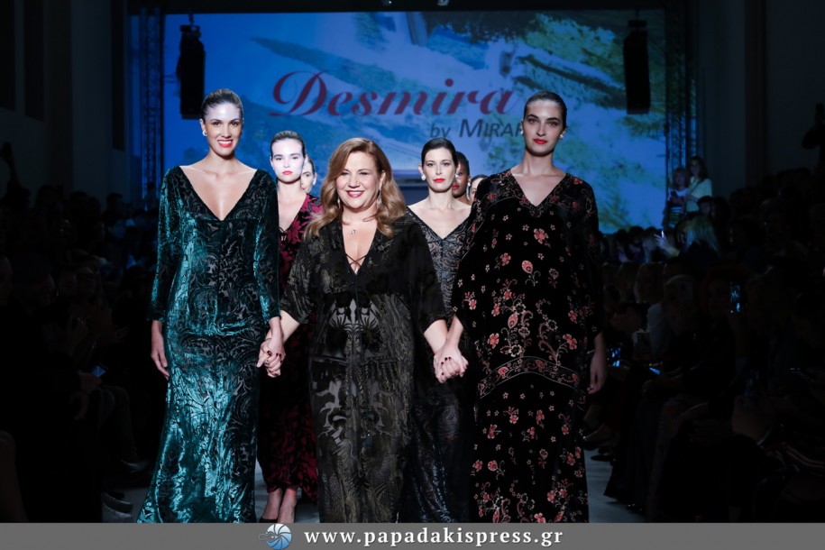 Tο fashion show που παρουσίασε, είχε τεράστια επιτυχία! Η συλλογή περιλάμβανε πολύχρωμα βελούδα devore με μετάξι, και κιμονό με μπροκάρ ανάγλυφα υφάσματα και βραδινά outfits με πολύχρωμες παγέτες. Όλα τα ρούχα Desmira είναι άνετα, ευκολοφόρετα, ανάλαφρα, αισθησιακά, και πάνω από όλα ποιοτικά. Απευθύνονται σε όλες τις ηλικίες χωρίς να προβληματίζουν την κάθε γυναίκα για το πως να ντυθεί Τα παπούτσια που συνοδέψαν τα outfits των μοντέλων, ήταν πρόσφορα του οίκου HARALA. Στο πλευρό της Δέσποινας Μοιραράκη όπως πάντα ήταν η οικογένεια της, τα παιδιά της και ο σύζυγος της, Ναύαρχος Π/Ν Ιωάννης Κοντούλης και πολλοί επώνυμοι φίλοι. Η ίδια δήλωσε: “ήταν μεγάλη τιμή για εμένα που μου ζητήθηκε να συμμετέχω στο Athens Xclusive Designers fashion Week με τη χειμερινή collection DESMIRA. Αποτελεί κίνητρο να προσπαθήσω περισσότερο για το καλύτερο δυνατό αποτέλεσμα”.