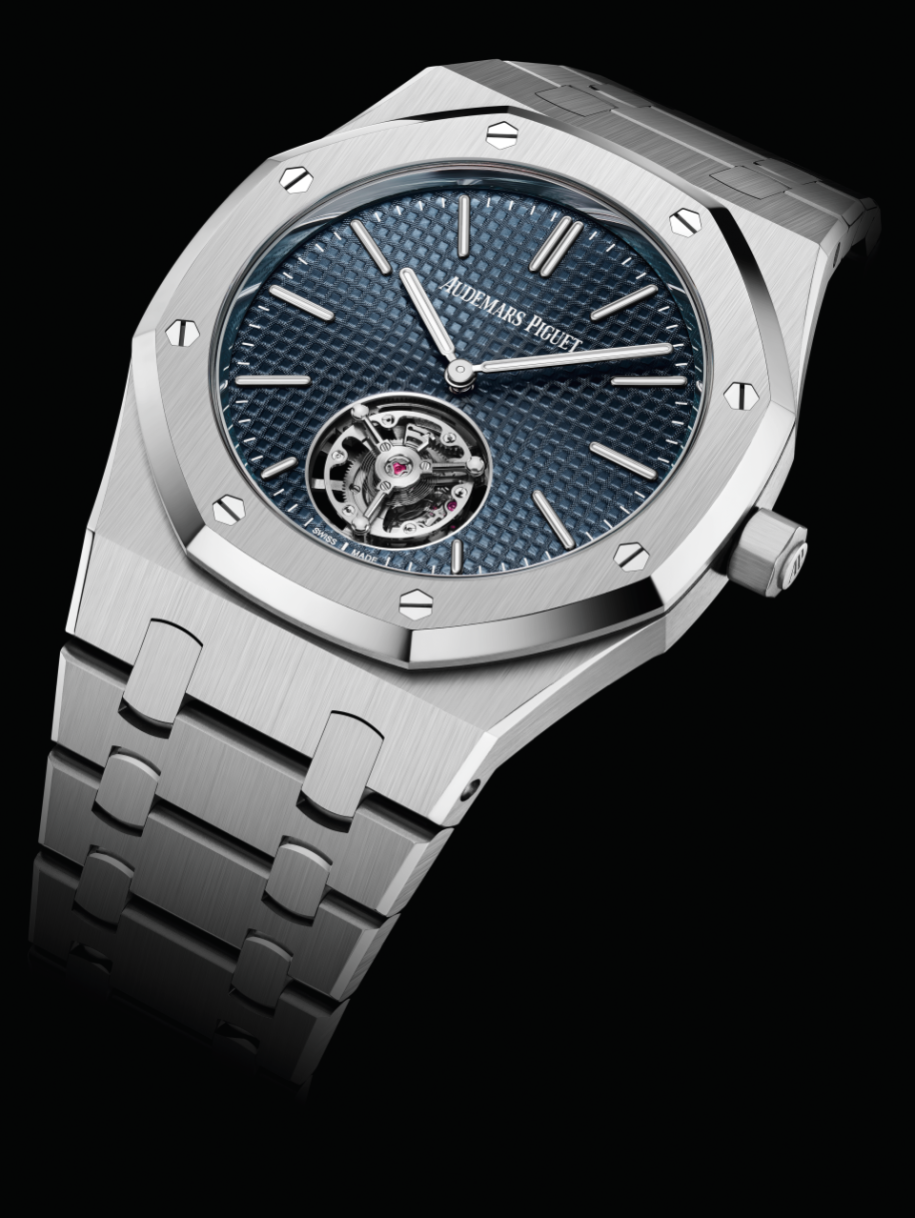 «Το Royal Oak συνεχίζει να εξελίσσεται και να πρωτοπορεί ύστερα από 50 χρόνια από τη δημιουργία του, και θα συνεχίσει και για τα επόμενα 50 χρόνια. Παραμένει να είναι μια πλατφόρμα τεχνικής και αισθητικής εξέλιξης, όπως αποδεικνύεται από το νέο εξαιρετικά λεπτό flying tourbillon που κάνει το ντεμπούτο του τόσο στα κλασικά μοντέλα 39 mm όσο και στα περίφημα μοντέλα Royal Oak 37 mm. Η αρχιτεκτονική της κίνησης σχεδιάστηκε για να προσφέρει μια μοναδική θέα στο μικρότερο cage, ενώ παράλληλα επιδεικνύει μια ελκυστική αντίθεση των τεχνικών φινιρίσματος που έγιναν στο χέρι.» δηλώνει ο Michael Friedman (Head of Compilations).