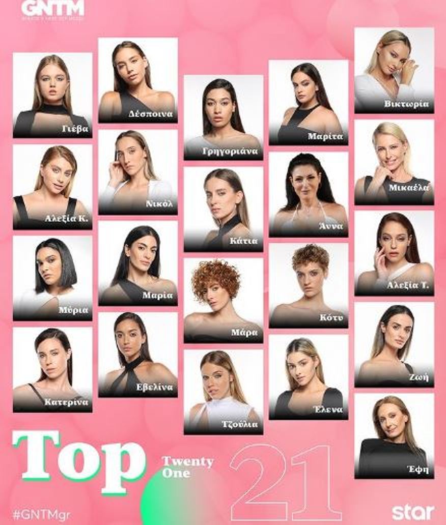 Τα 21, λοιπόν, κορίτσια που μπήκαν στο σπίτι του GNTM είναι οι εξής: Γιέβα, Αλεξία Κ., Μύρια, Κατερίνα, Δέσποινα, Νικόλ, Μαρία, Εβελίνα, Γρηγοριάνα, Κάτια, Μάρα, Τζούλια, Μαρίτα, Άννα, Κότυ, Έλενα, Βικτώρια, Μικαέλα, Αλεξία Τ., Ζωή και Έφη.
