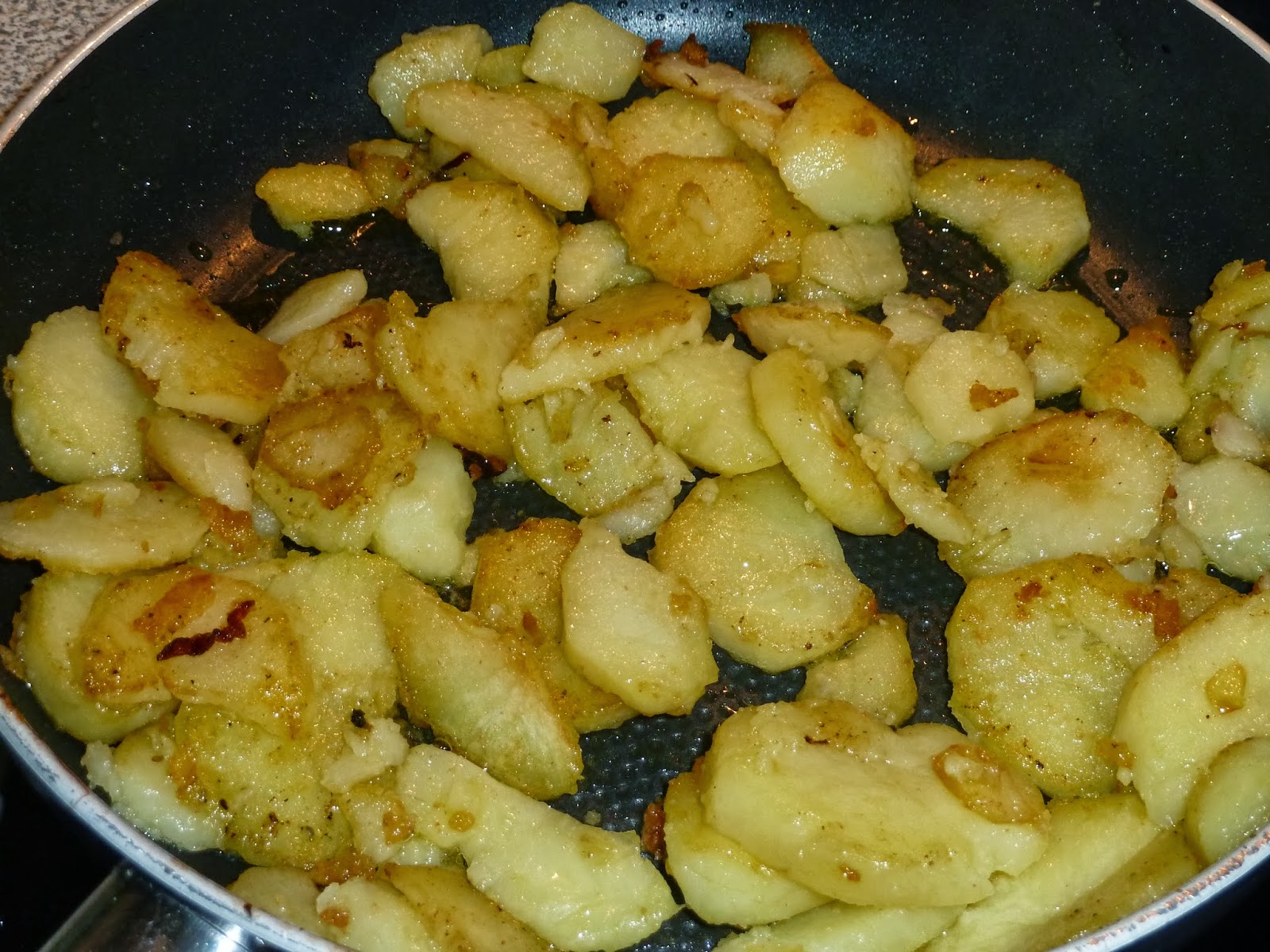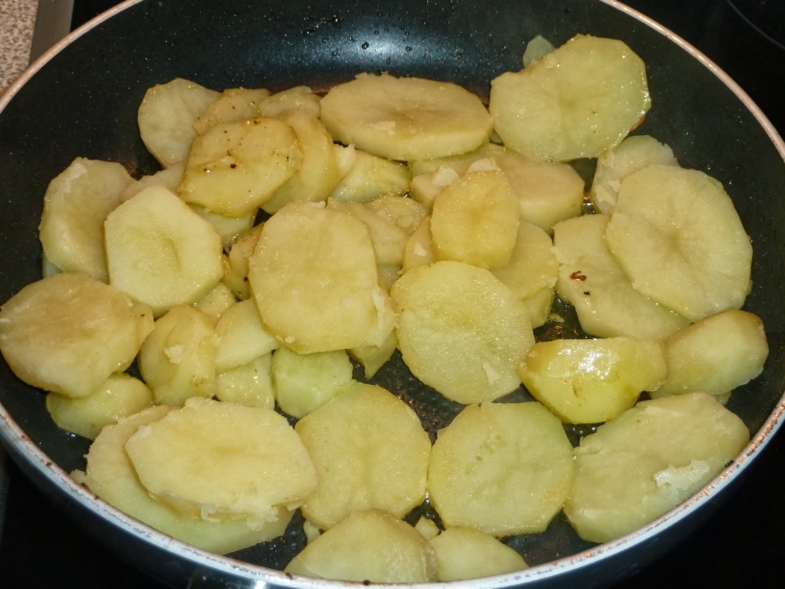 6) Αφού βγάλετε και τα λουκάνικα προσθέστε κι άλλο λάδι και σοτάρετε τις πατάτες μέχρι να γίνουν τραγανές και να έχουν χρυσαφί χρώμα.
