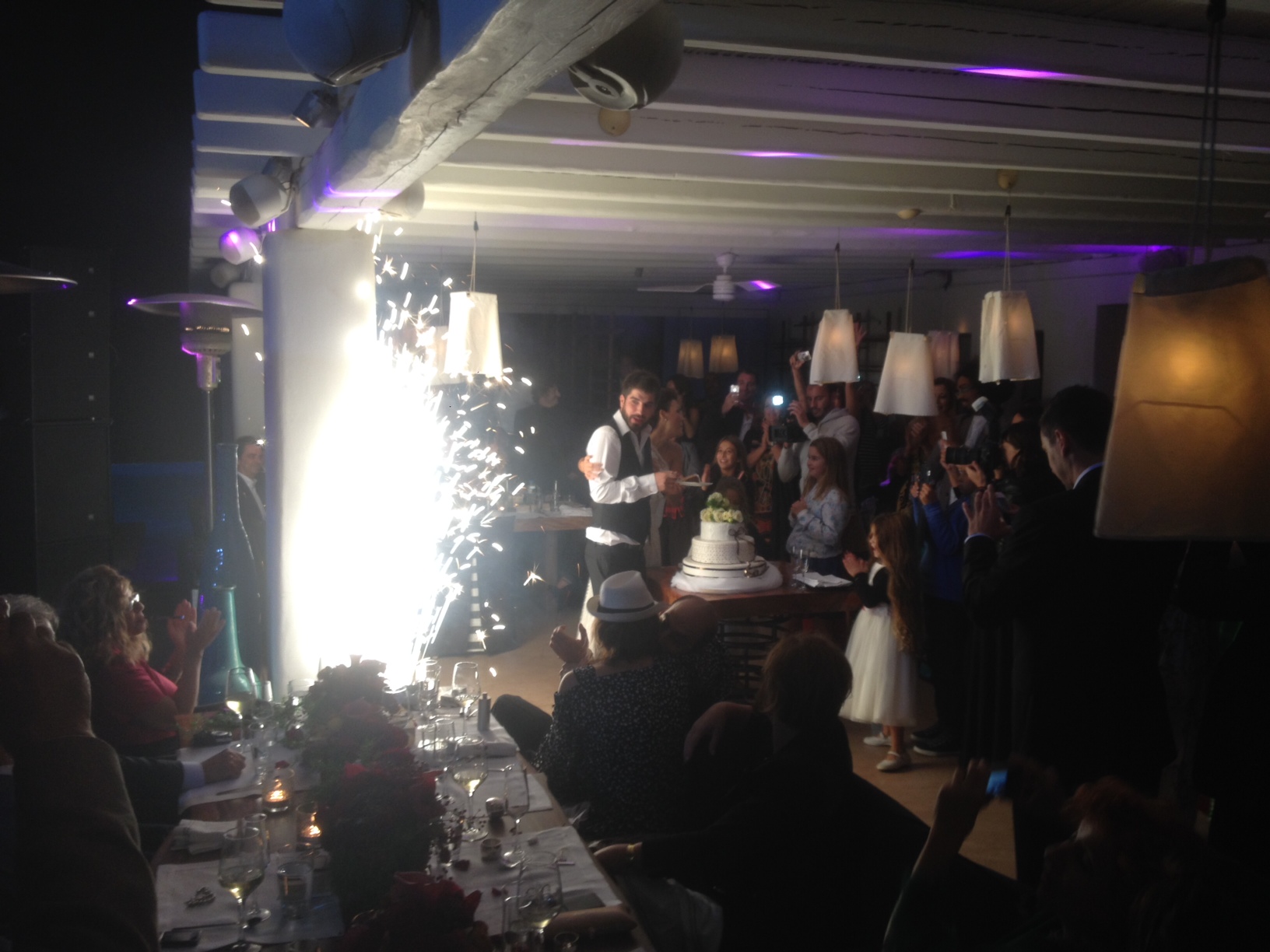 Ο γαμπρός δεν έκανε είσοδο στο πάρτυ με την αγαπημένη του αλλά με μηχανή, που οδηγούσε ο Τόνυ Σφήνος και όπως ήταν λογικό οι καλεσμένοι ξέσπασαν σε επιφωνήματα και χειροκροτήματα!Δείτε τις πρώτες φωτογραφίες από το πάρτι με το οποίο το ζευγάρι έκανε το πρώτο του βήμα στον έγγαμο βίο.