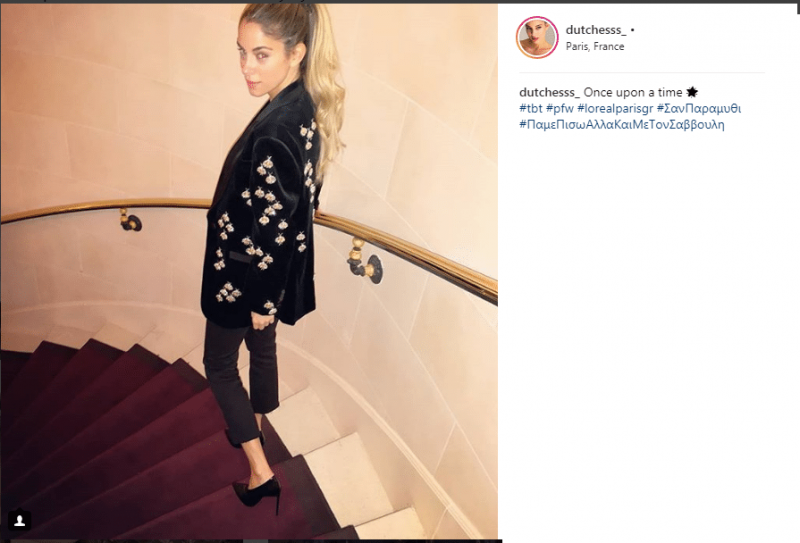 Η Δούκισσα έζησε την πιο σημαντική στιγμή της καριέρας της μην μπορώντας να κρύψει τη χαρά και την περηφάνια της για αυτό. Αν και έχει επιστρέψει κοντά στο μικρό Σάββα νοσταλγεί το Παρίσι, και δημοσιεύει στιγμιότυπα από το ταξίδι της.