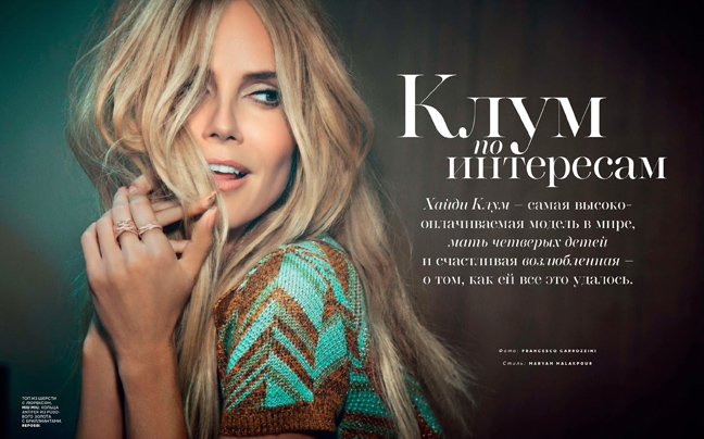 Στο φακό του 32χρονου φωτογράφου Francesco Carrozzini πόζαρε η Heidi Klum, για τις ανάγκες φωτογράφησης του περιοδικού «Vogue» της ρωσικής έκδοσης του Οκτωβρίου.