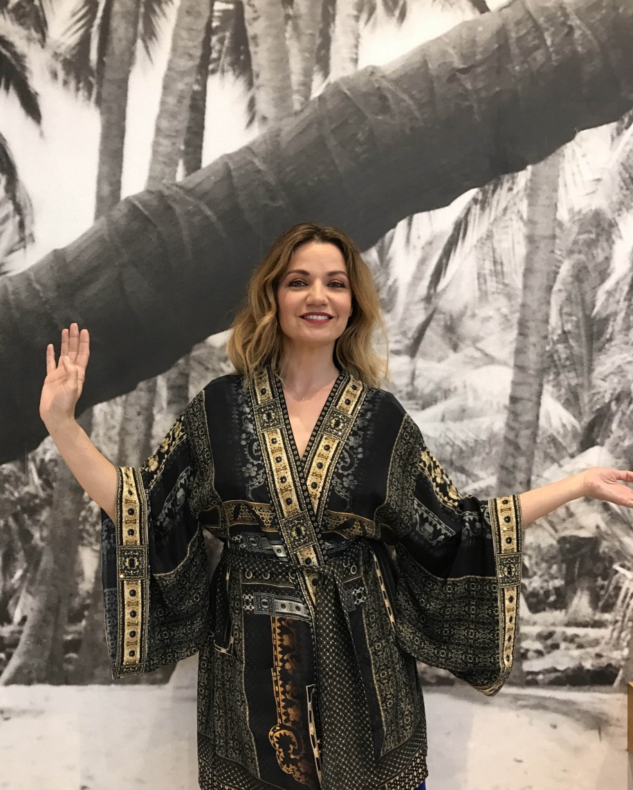 Την αγαπημένη και πανέμορφη ηθοποιό Παναγιώτα Βλαντή εντόπισε ο φωτογραφικός φακός, η οποία επέλεξε για την καλοκαιρινή της γκαρνταρόμπα ένα υπέροχο μαύρο printed Kimono από την συλλογή καλοκαίρι 2017 του οίκου Camilla  που διανέμει η εταιρία Salt Water.