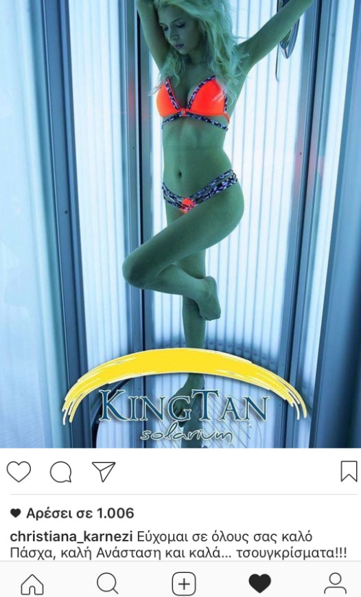 Το μοντέλο μας εύχεται χρόνια πολλά και καλά τσουγκρίσματα κάνοντας solarium και τρελαίνει τους διαδικτυακούς της φίλους.