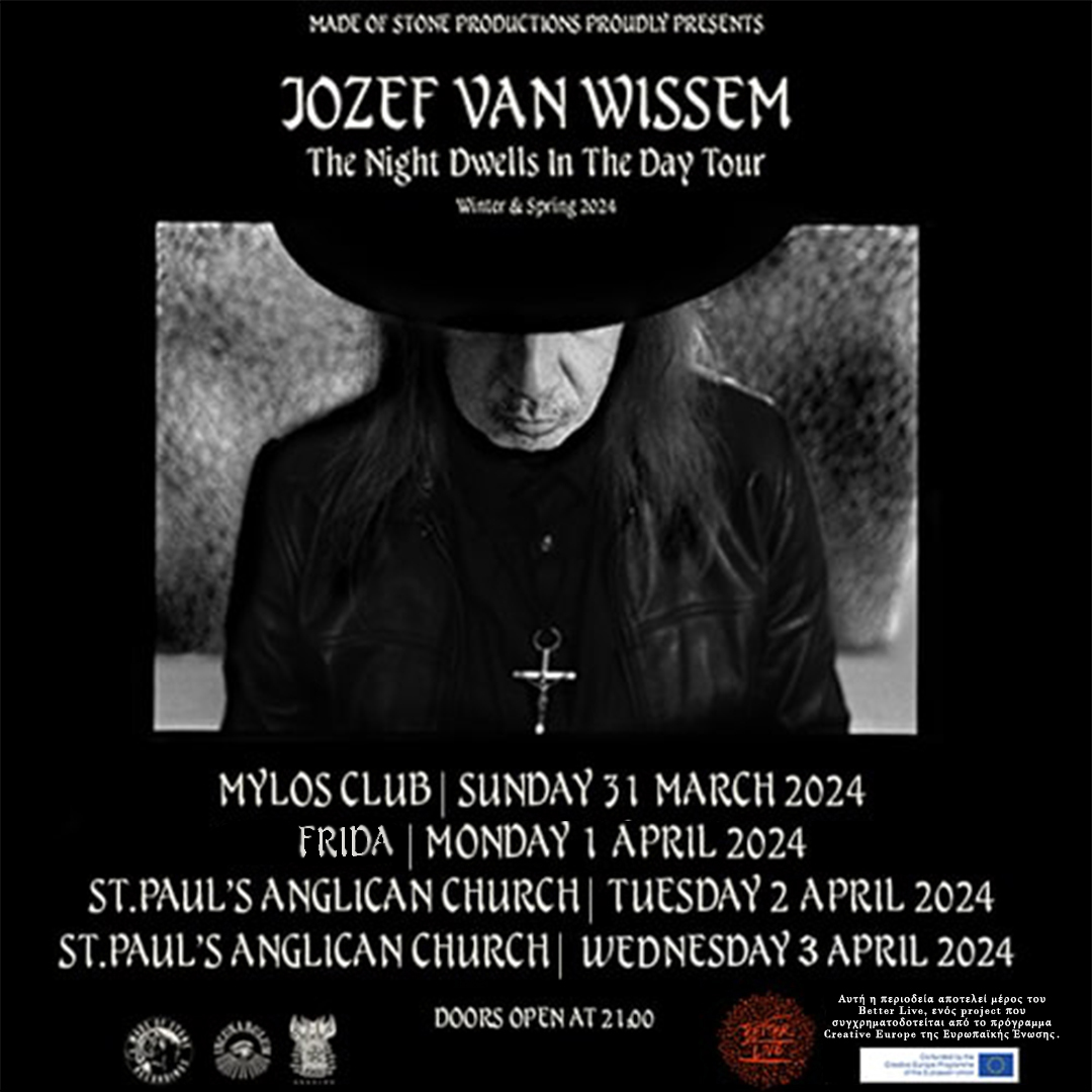 Την Κυριακή 31 Μαρτίου στο Mylos Club της Θεσσαλονίκης, την Δευτέρα 1 Απρίλίου στο Frida live stage στην Πάτρα και την Τρίτη 2 & Τετάρτη 3 Απριλίου στην Αγγλικανική Εκκλησία του Αγ. Παύλου στην Αθήνα, θα ξεδιπλωθεί μια ατμοσφαιρική σύνδεση των πολυδιάστατων ηχοτοπίων της μουσικής του Jozef Van Wissem σε δυο μυσταγωγικές συναυλίες.