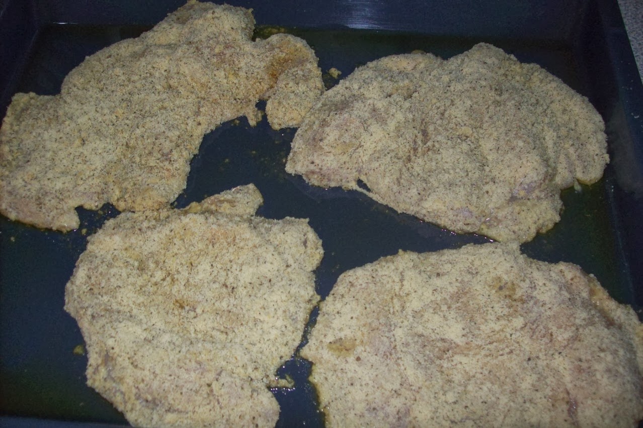 4) Περάστε τα στήθη από το μίγμα με το λάδι και μετά από το μίγμα με τα κρακεράκια. Τοποθετήστε τα σε λαδωμένο ταψί φούρνου.