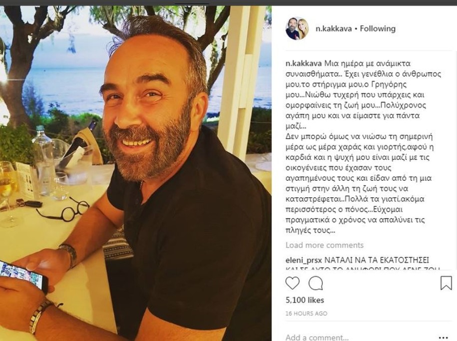 Η Ναταλί Κάκκαβα δημοσίευσε μια φωτογραφία του συζύγου της, Γρηγόρη Γκουντάρα με αφορμή τα γενέθλια του. Όμως τα συναισθήματα της είναι ανάμεικτα λόγω της καταστροφή από τη φωτιά.