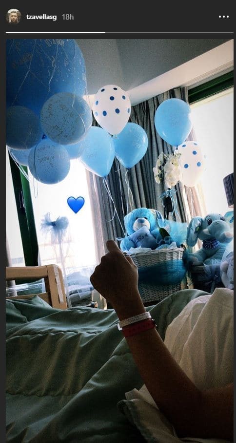 Ο Γιώργος Τζαβέλλας δημοσίευσε στα social media μια τρυφερή φωτογραφία μέσα από το δωμάτιο του μαιευτηρίου με τα μπλε μπαλόνια να μαρτυρούν ότι το φύλο του μωρού είναι αγόρι!