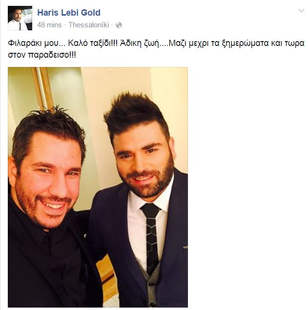 Ο δημοσιογράφος και συνεργάτης του Παντελή Παντελίδη, Χάρης Λεμπιδάκης, αποχαιρετά τον καλό του φίλο με μια ανάρτηση…