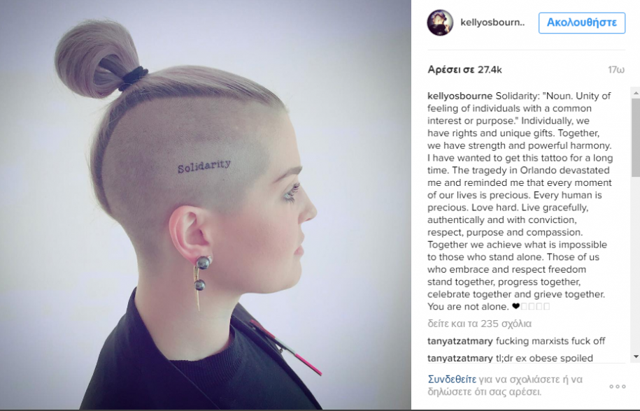 Η λέξη που επέλεξε να κάνει τατουάζ ήταν το “solidarity” (“Αλληλεγγύη”) και ανέβασε τη φωτογραφία της στο Instagram, εξηγώντας στους followers της γιατί έκανε το συγκεκριμένο τατουάζ!