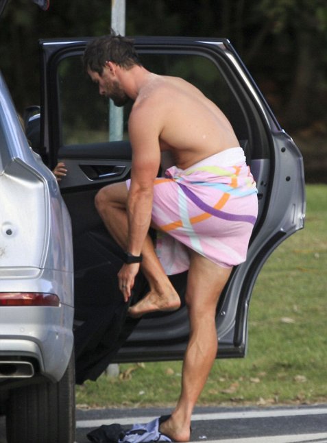 Ο Αυστραλός Κρις Χέμσγουορθ, πατέρας τριών μικρών παιδιών και μέχρι πρότινος κάτοχος του τίτλου του πιο σέξι άντρα στον κόσμο αλλάζει μαγιό σε κοινή θέα…