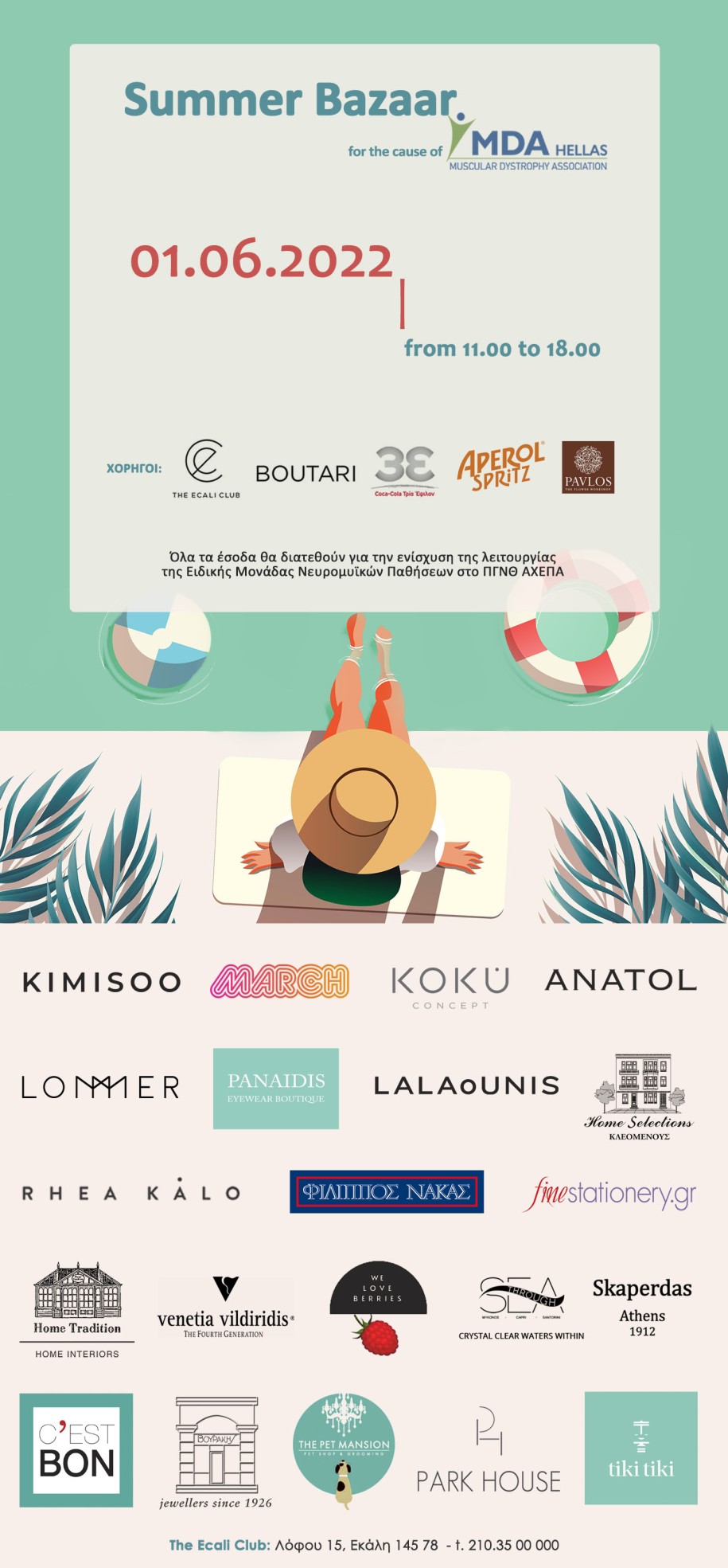Το MDA υποδέχεται το καλοκαίρι και διοργανώνει το καθιερωμένο Summer Bazaar με γνωστά ελληνικά καταστήματα/designers, που στηρίζουν το έργο του Σωματείου.