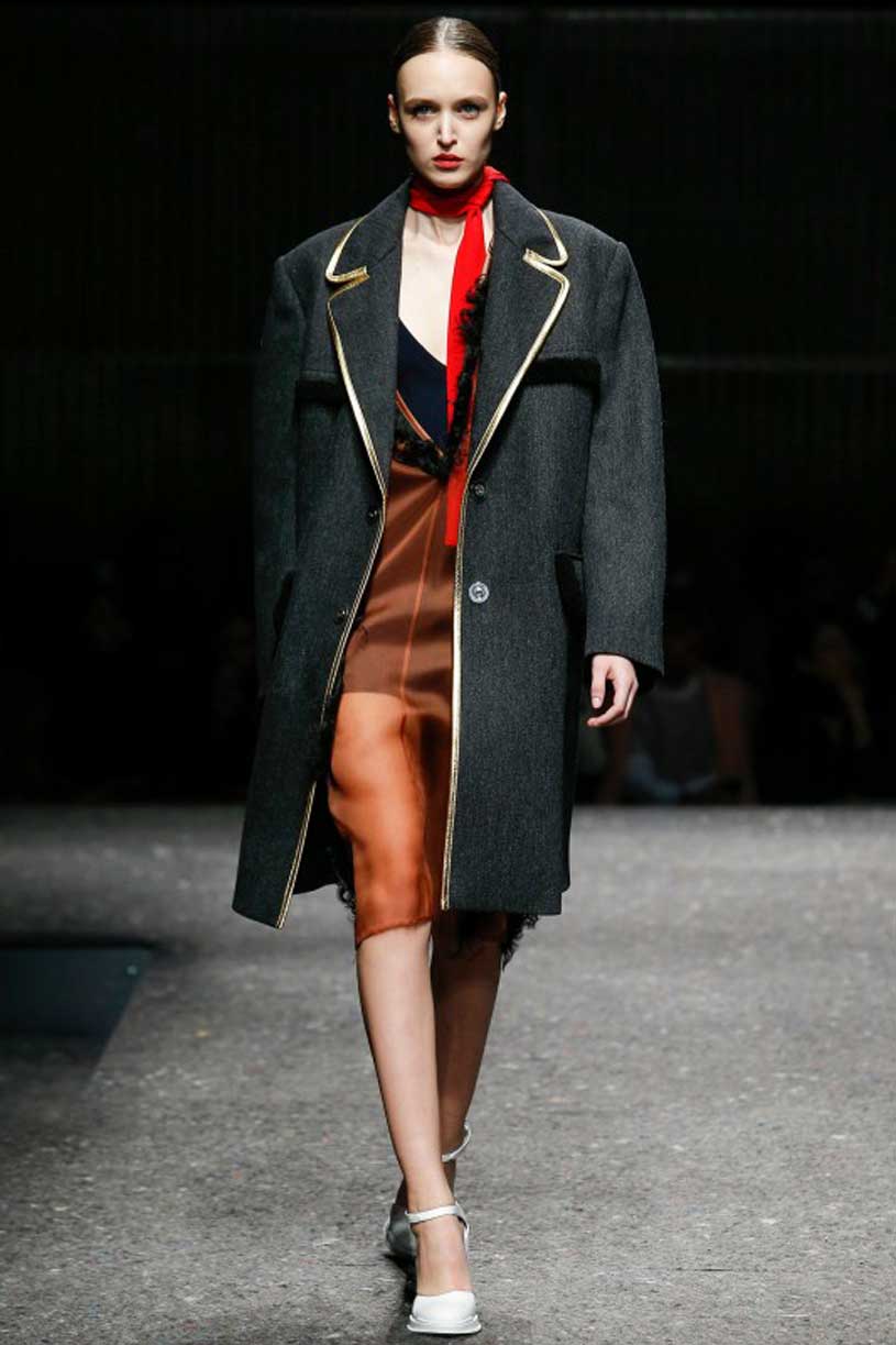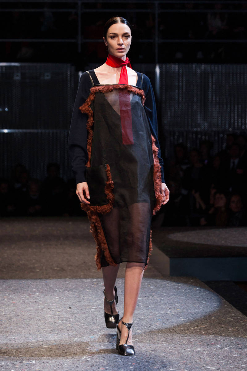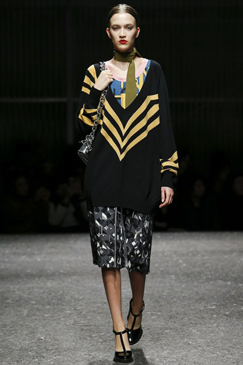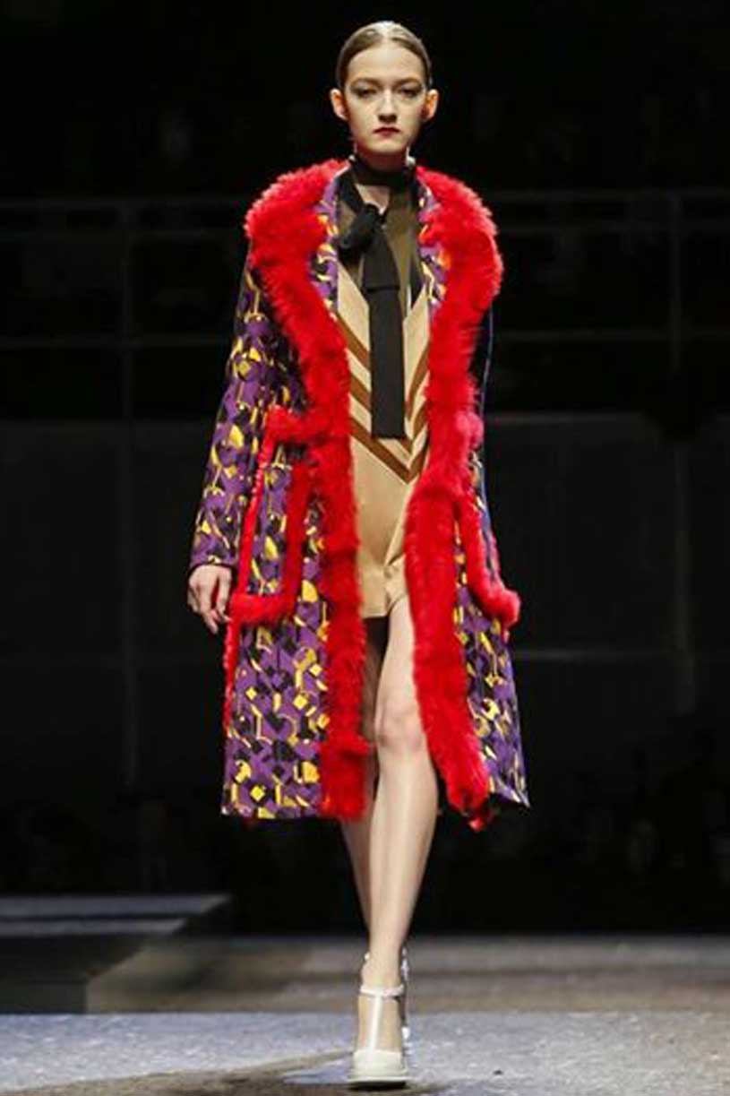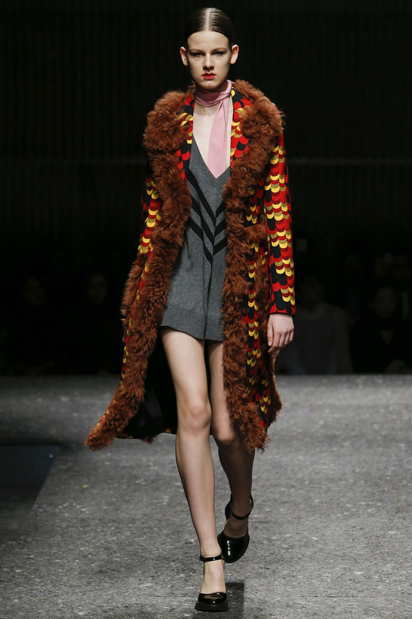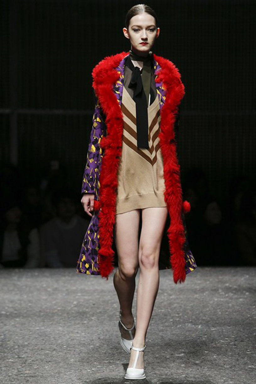 Σύμφωνα με την νέα συλλογή του οίκου Prada για το Φθινόπωρο – Χειμώνας 2014, η μόδα επιτάσσει πολυτελή υλικά και όγκους που παραπέμπουν στα 70’ς. Εκθαμβωτικά χρώματα, γούνες και έντονο το στοιχείο του μαύρου και του μωβ κυριάρχησαν στην πασαρέλα που φανερώνει το πάντρεμα του στυλ από το 1920 μέχρι και το 1980, με ιδιαίτερη εκκεντρικότητα σε έναν απόλυτα ξεχωριστό τρόπο.