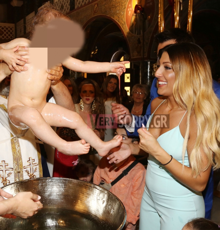 Ο Πάνος Καλίδης και η Λεάννα Μαρκόγλου βάπτισαν τον γιο τους στον Αγ. Νικόλαο, Γλυφάδας, την Κυριακή το πρωί και οι φίλοι του ήταν εκεί για να τους τιμήσουν με την παρουσία τους.